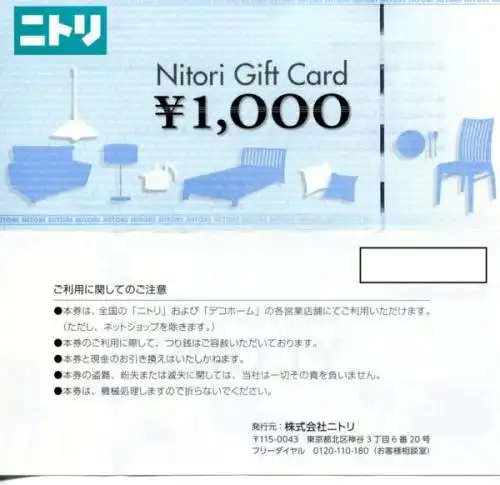 ニトリギフトカード 1000円 (有効期限なし)