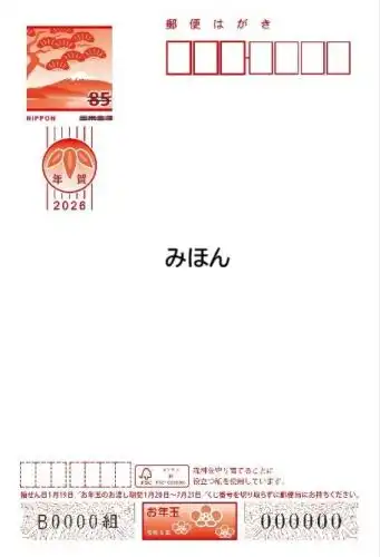 2026年 (令和8年) 年賀はがき85円 無地 1箱 (4000枚)